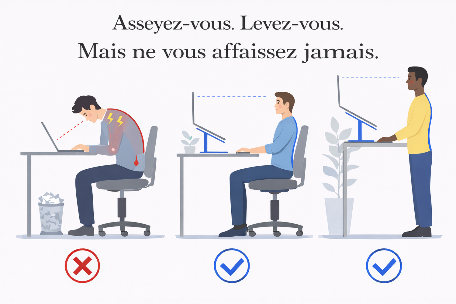 Adopter une position assise ou debout correcte améliore le confort, la performance et la santé au quotidien.